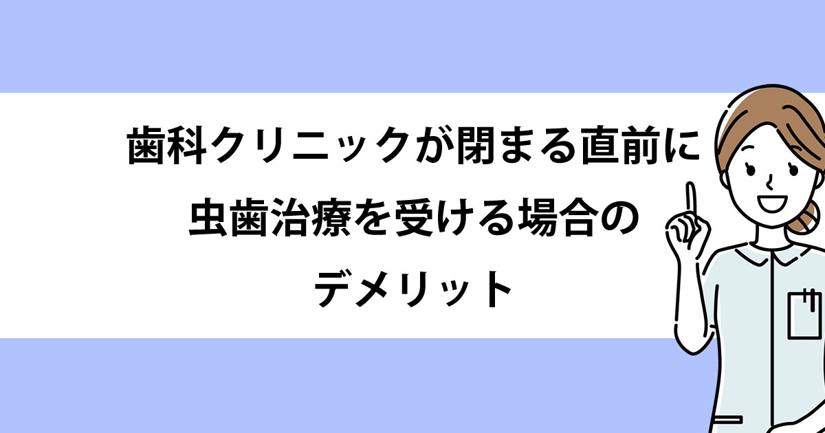 しかし、歯科クリニックが閉まる直前に虫歯治療を受ける場合、デメリットがいくつかあります。